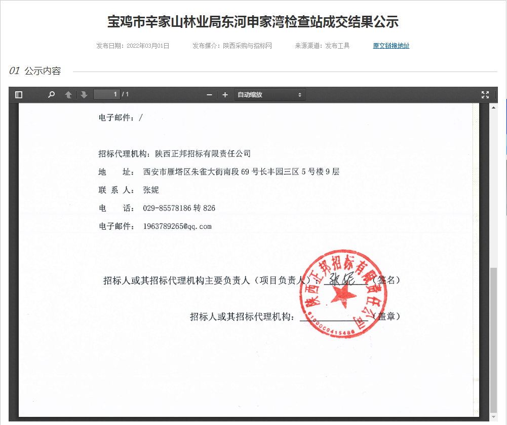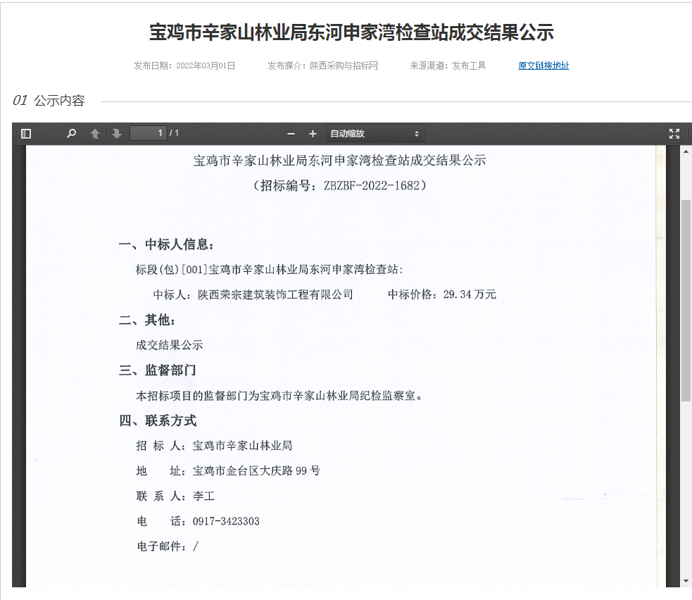 寶雞市辛家山林業局東河申家灣檢查站成交結果公示