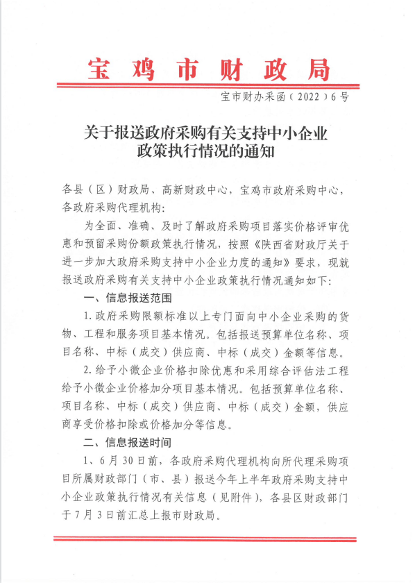 關于報送政府采購有關支持中小企業政策執行情況的通知