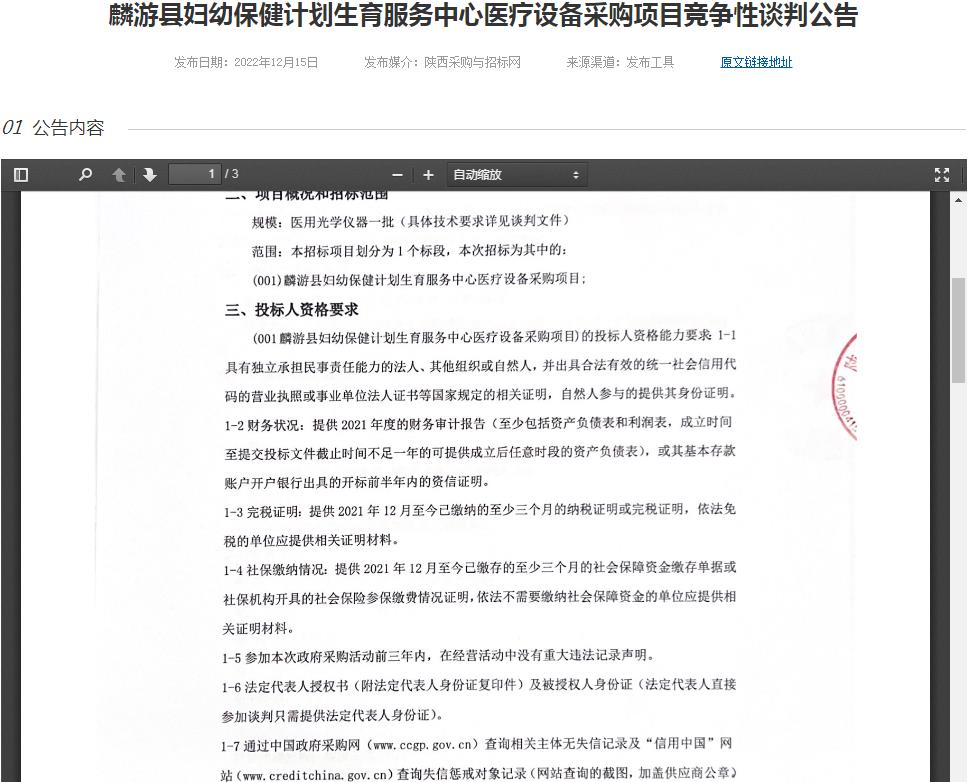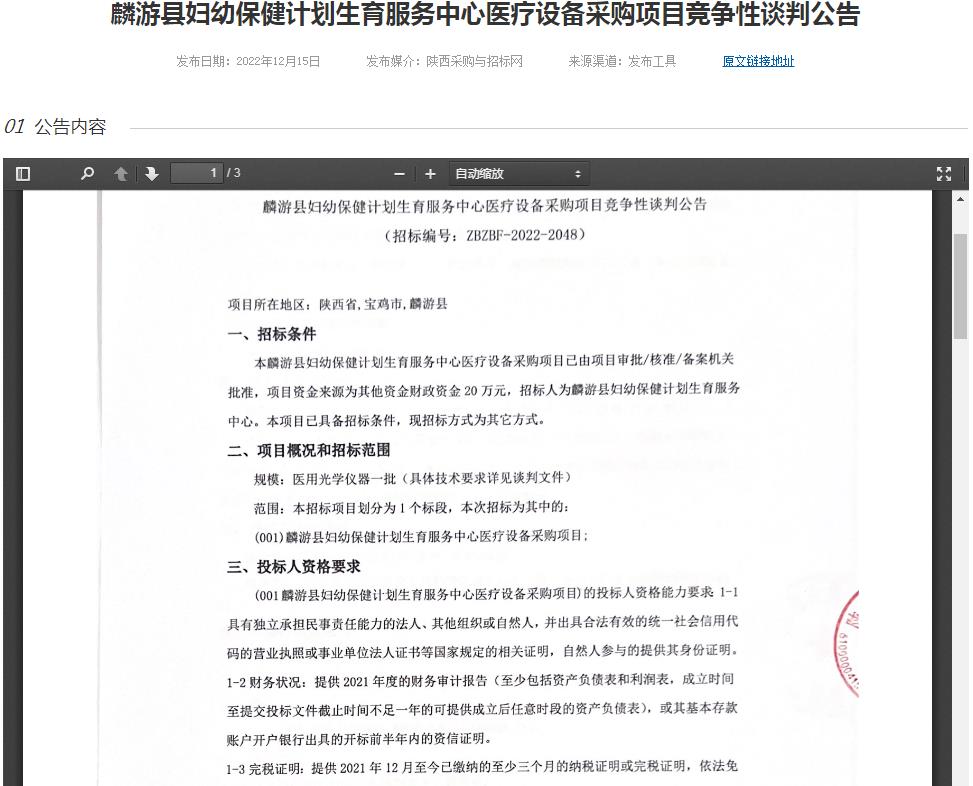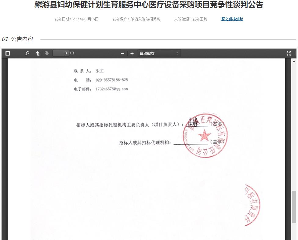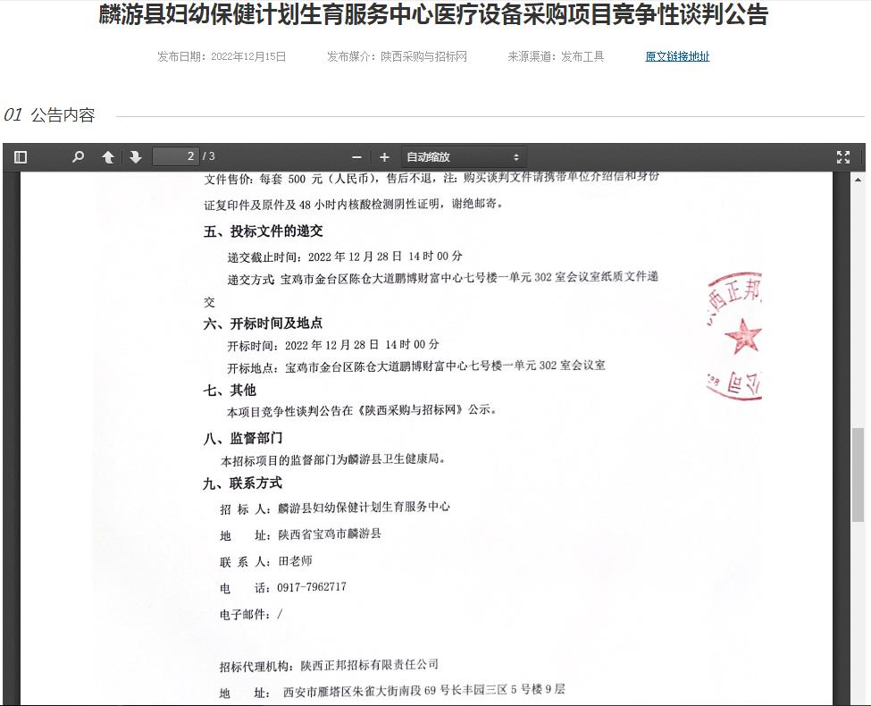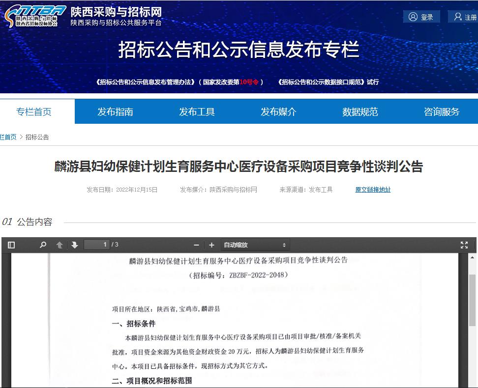 麟游縣婦幼保健計劃生育服務中心醫療設備采購項目競爭性談判公告