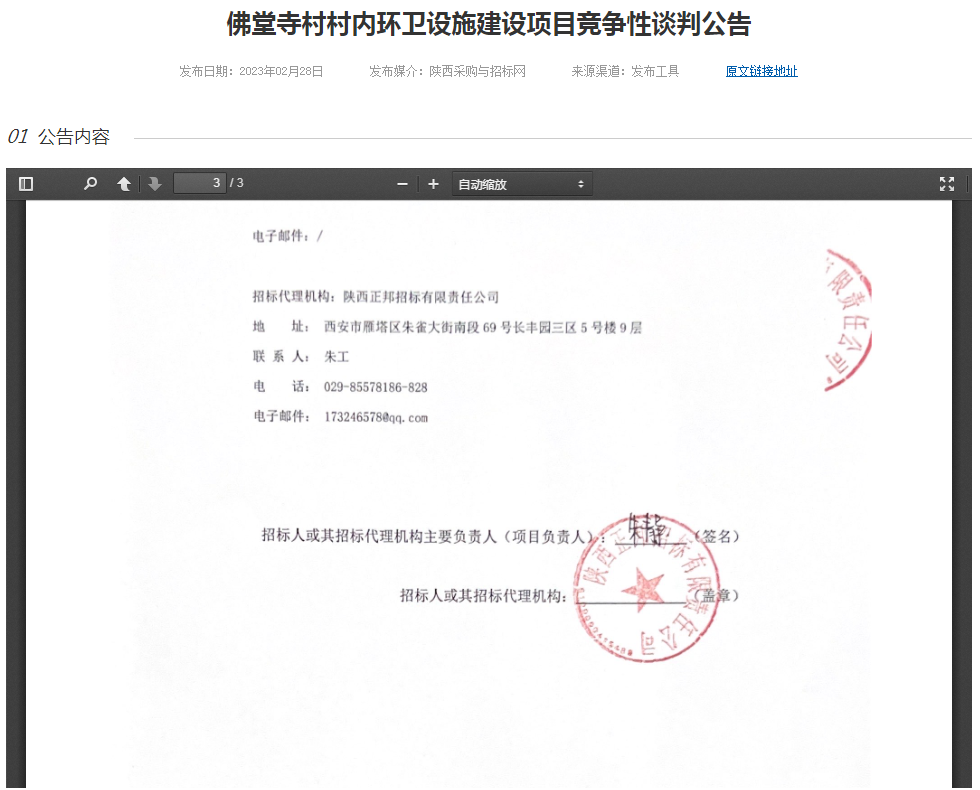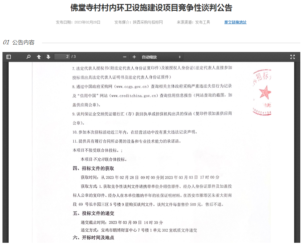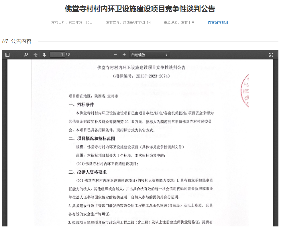 佛堂寺村村內環衛設施建設項目競爭性談判公告